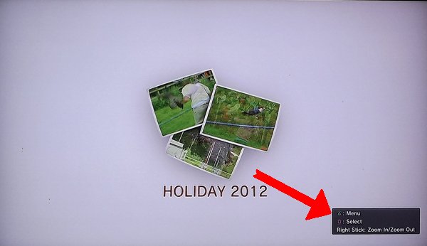 Step2 - Scroll to your slideshow and click the "triangle" button on your controller to open the menu bar.