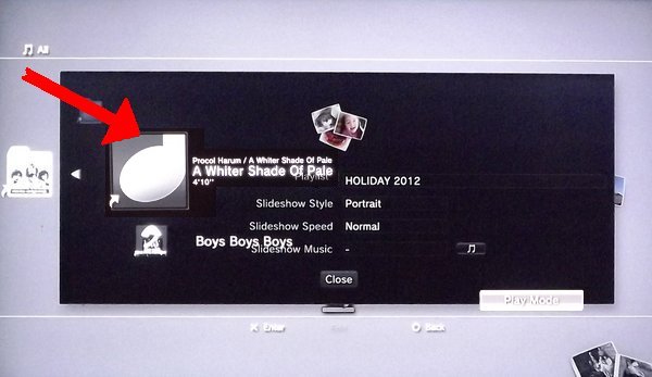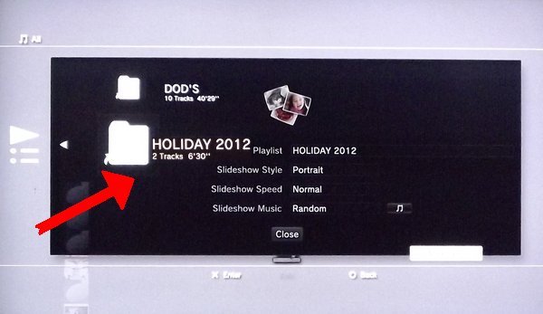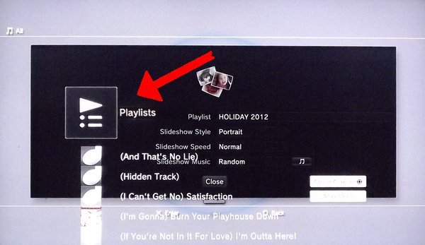Step6 - Scroll through the playlists and find the one you want to link to the slideshow, select it by clicking the "X" button on your controller.